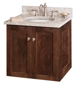Pipe Chase Drawer in a Chest Vanity provides maximum storage space around plumbing pipes. Heirloom Chest Vanity shown.